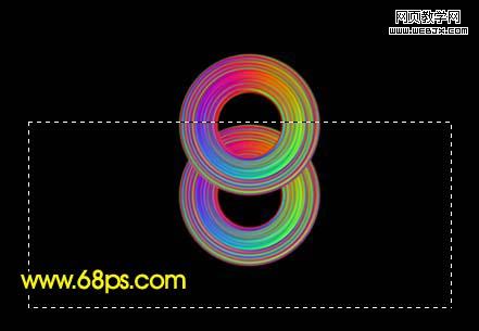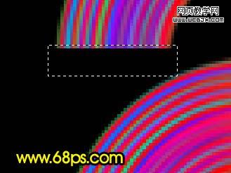 8、把彩色圓環(huán)復(fù)制一層,用矩形選框工具框選圓環(huán)下半部分,如圖11,按delete刪除,取消選區(qū)后效果如圖12。