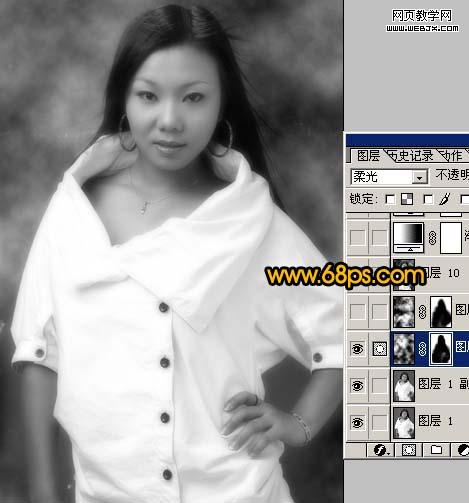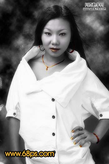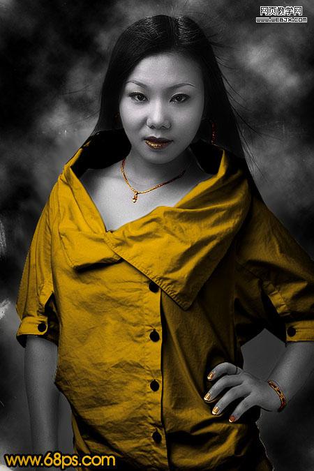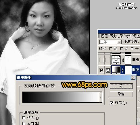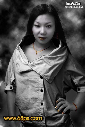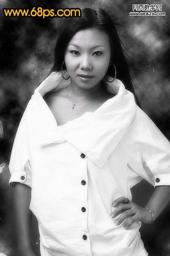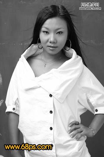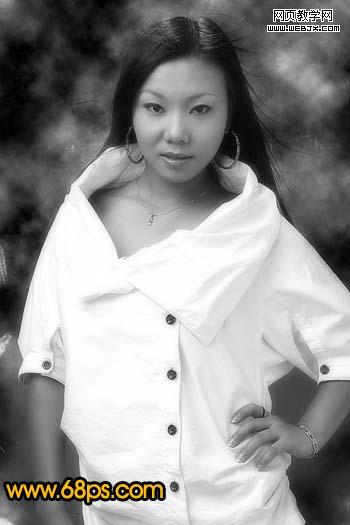 本教程介紹黑白質感膚色的制作方法。大致過程:先把照片轉成黑白效果,然后給圖片加上一些紋理背景并適當調暗圖片。最后就是人物高光部分的調節。