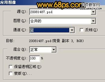 1、打開原圖素材,把背景圖層復制一層,對副本執行:圖像 > 應用圖像,參數設置如圖1,效果如圖2。