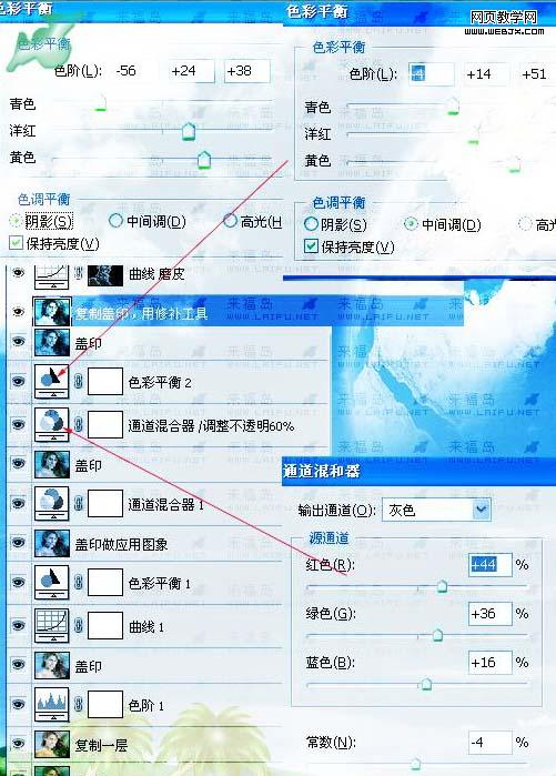 9、執(zhí)行:圖層 > 新建調(diào)整圖層 > 通道混合器,參數(shù)設(shè)置如下圖。