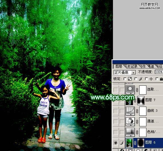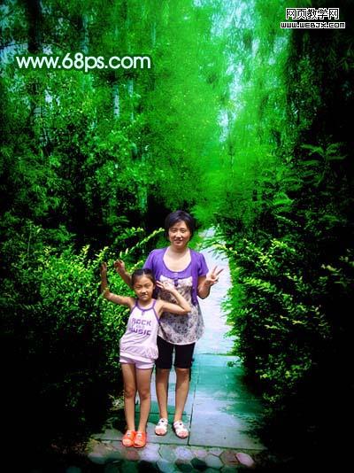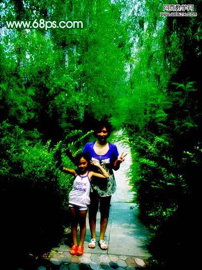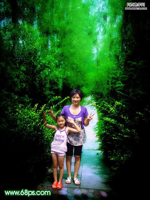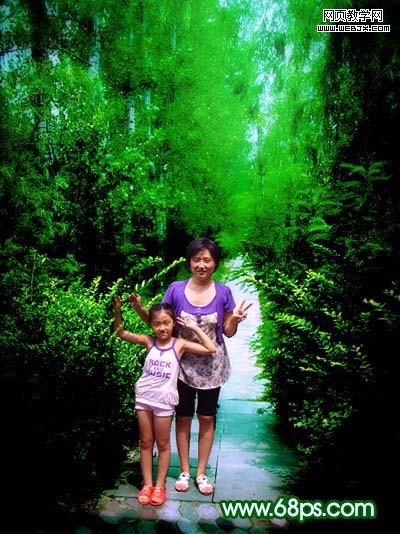 素材圖片的背景部分樹木比較濃密,比較適合制作夢幻效果。處理的時候先把復制的圖片模糊處理,然后改變下圖層混合模式,用蒙版控制好范圍,效果就出來了,后面適當調整下顏色即可。