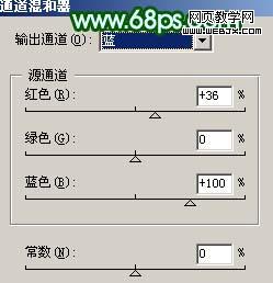 6、創建通道混合器調整圖層,對藍色進行調整,參數設置如圖9,效果如圖10。