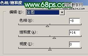 5、創建色相/飽和度調整圖層,參數設置如圖7,效果如圖8。