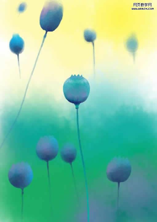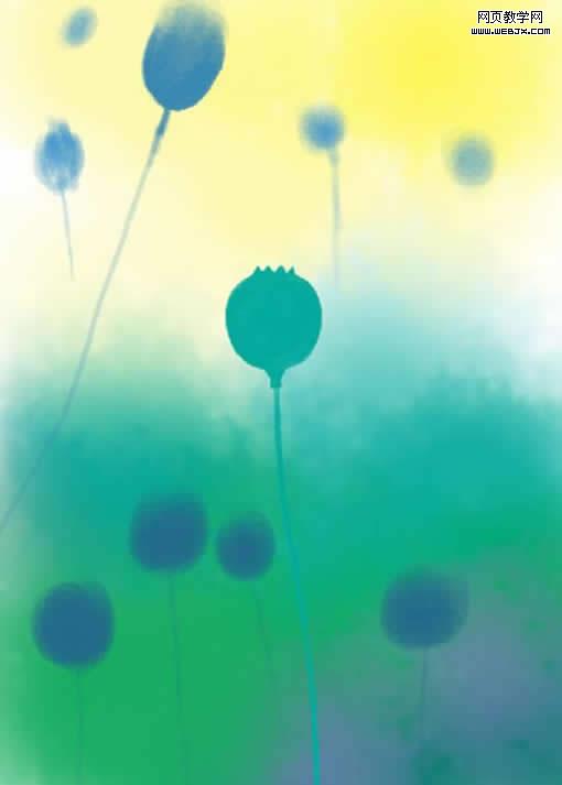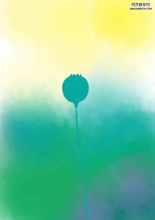 再單獨建立一個圖層,把畫筆調小,畫筆的大小可以通過鍵盤上的左右中括號 []來控制,[左中括號是畫筆變小,]右中括號是畫筆增大。用適當大小的畫筆以色塊的方式涂出一個花苞,在調小畫筆畫出花莖,顏色由自己愛好所定,近似色,對比色都可以,要的是最后的效果。這里我選擇了近似色。
