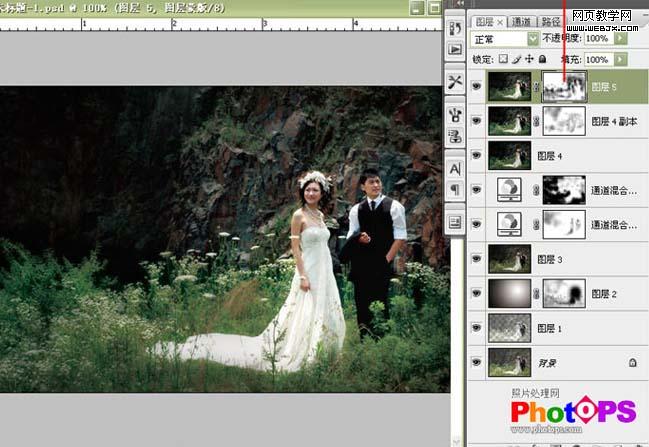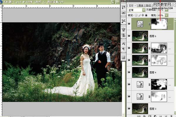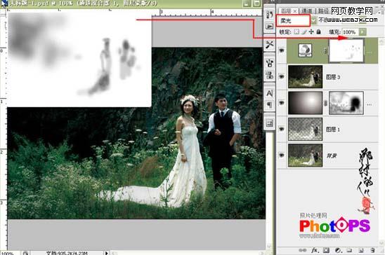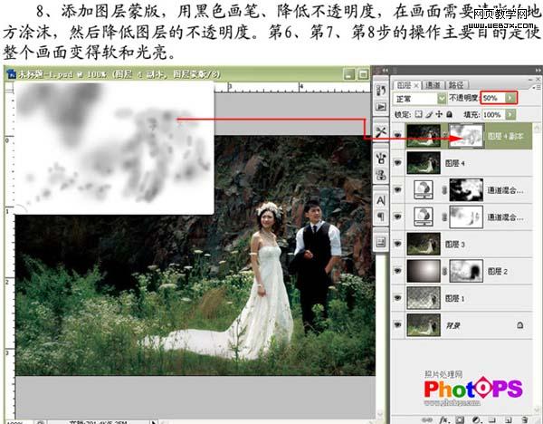 8、添加圖層蒙版,用黑色畫筆降低不透明度,在畫面需要清晰的地方涂抹,然后降低圖層的不透明度。第6-8步的操作主要是使真個畫面變得柔和光亮。