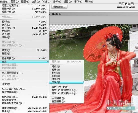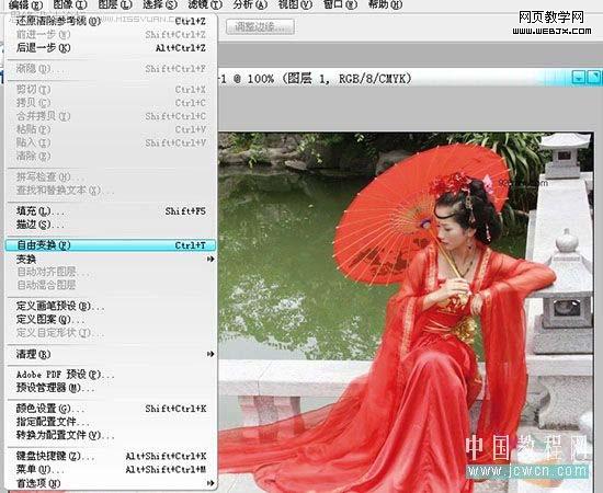 2、先用 "編輯"-"自由變換" (快捷鍵 "ctrl+t") 把人物位置調正點。