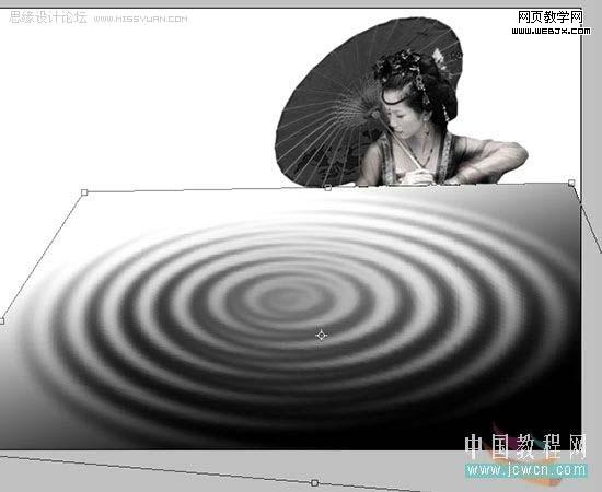 9、之后在人物腳下做個水紋,新建個圖層,拉一條黑白漸變。