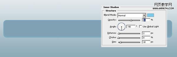 第二步:選擇圓角矩形,大小為763x80px,顏色為#7fa1b3,然后選擇圖層樣式>內(nèi)陰影內(nèi)陰影顏色#7dc8e8,如圖所示: