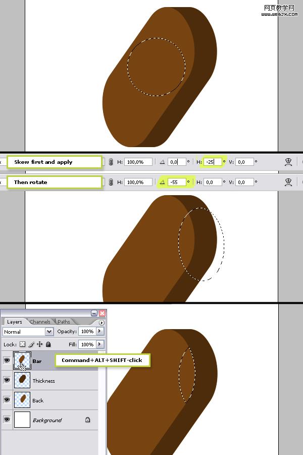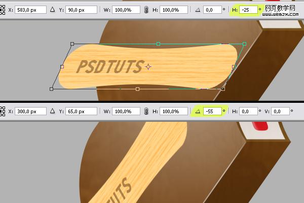 然后按ctrl+t變形,設置橫向斜-25度,-55度旋轉。