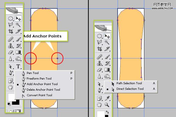 選擇添加描點工具,添加如下描點,之后用直接選擇工具,調整描點如圖,調整好后,在圖層上右擊柵格化圖層。