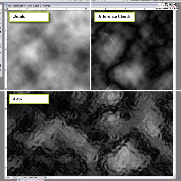 按住ctrl+shift不放,用鼠標分別點選冰激凌圖層,副本88,副本89圖層載入選區,在不取消選區的情況下選擇紋理圖層,按shift+ctrl+i反向,然后按delete刪除,然后按ctrl+d取消選擇,最后把圖層透明度調整為20%,效果如下。
