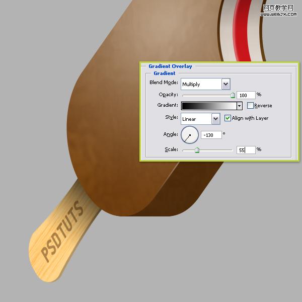 選擇冰激凌圖層,設置圖層樣式漸變疊加。