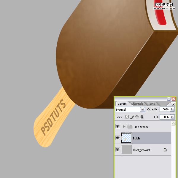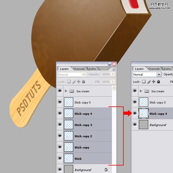 拖拽冰棒圖層到冰激凌圖層下面。