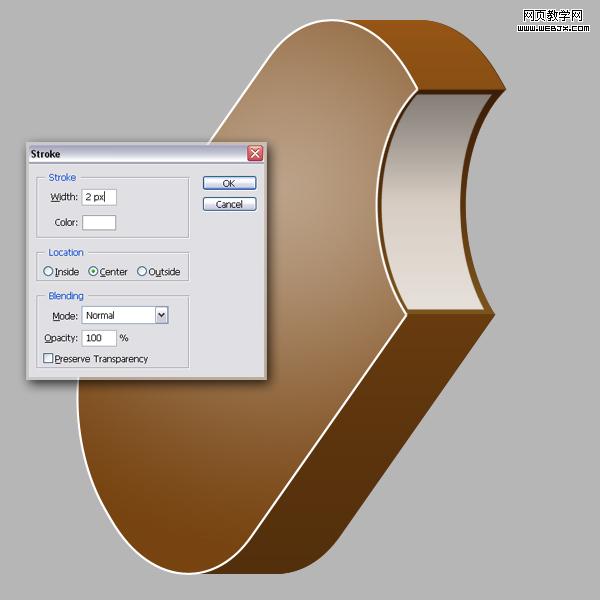 載入冰激凌圖層選區,新建一個名為highlight的圖層,選擇編輯=>描邊,設置描邊色為白色,寬度為2像素,位置居中,這時我們可以換一個背景。