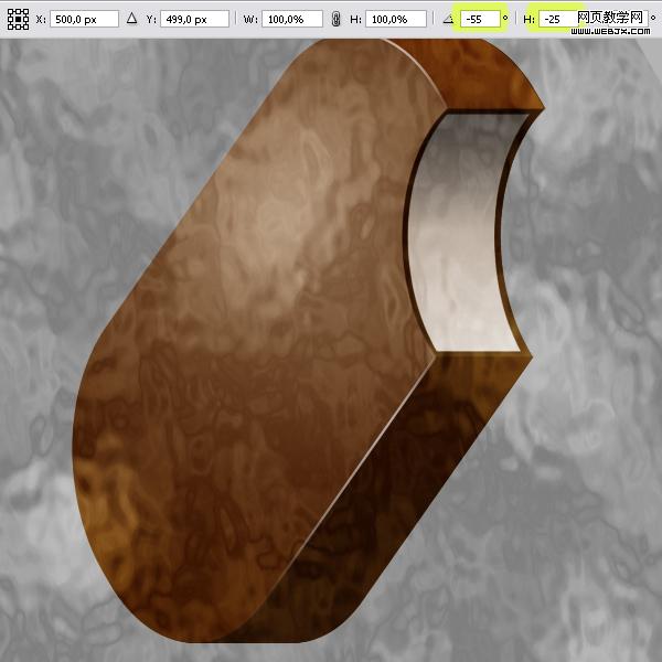 設置texture層模式為柔光模式,然后按ctrl+t,設置角度為-55度,橫向偏移設置為-25。