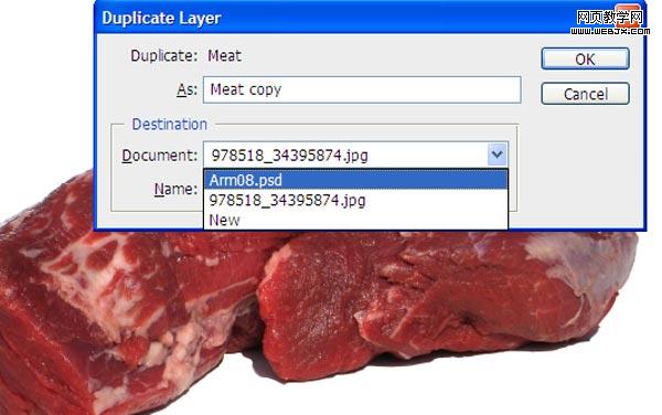 移動(dòng)肉素材里面的一部分到arm圖層,使用克隆工具和修復(fù)筆刷。
