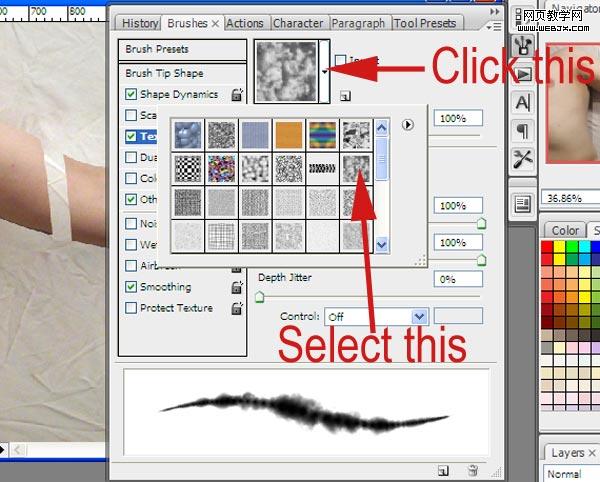現(xiàn)在我們將移除胳膊,選擇修復(fù)工具,我們把胳膊隱藏。