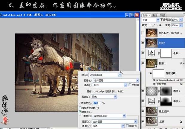 6、新建一個圖層蓋印圖層,執行:圖像 > 應用圖像操作,參數設置如下圖。