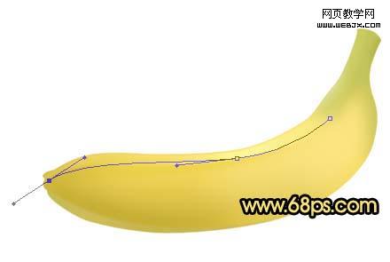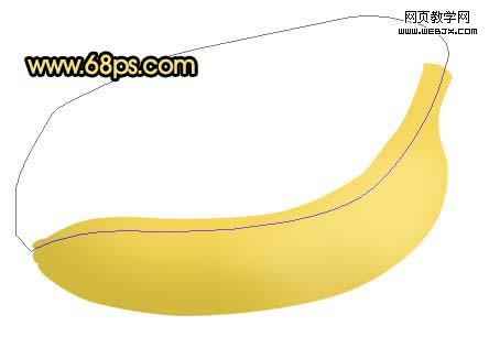 1、新建一個800 * 600 像素的文檔,背景填充白色,新建一個圖層,命名為“主體”,用鋼筆工具勾出香蕉的輪廓,如圖1,然后填充顏色:#f5d75b,效果如圖2。