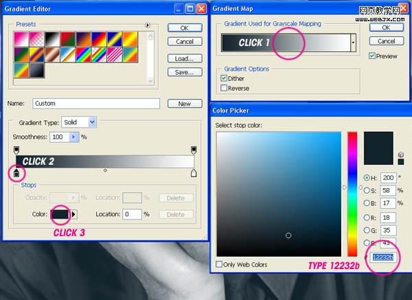在最頂層建立一個漸變映射調整層。使用下面圖層作為剪切蒙版。設置漸變映射如下圖。改變圖層混合模式為柔光。75%不透明度。再設置色相飽和度和通道混合器。來給這一層添加一個類似工作室出片的效果。讓其具有戲劇色彩。