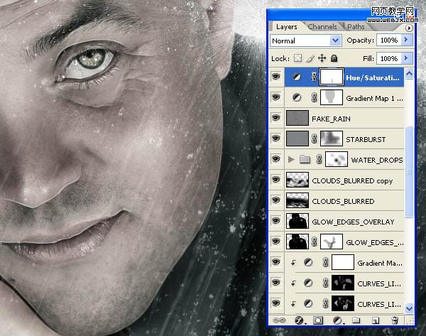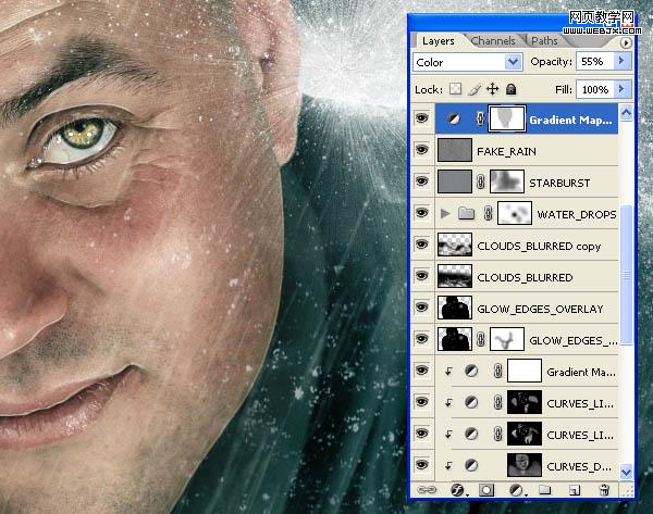 最終你得到的應該是一個可編輯性很強的圖像。設置圖層不透明度。圖層蒙版。色階。甚至是打開/關閉某些圖層的可見性。你還可以隨意的添加和刪除云。雨。光等等效果。不管怎么說。我們現在學會了如何得到一個非常棒的肖像照片的方法。