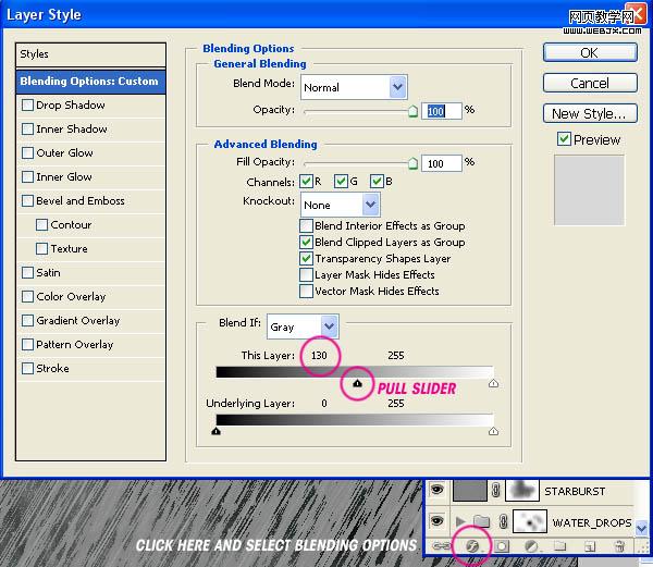 打開圖層樣式調板。調節本圖層黑顏色滑塊至130.