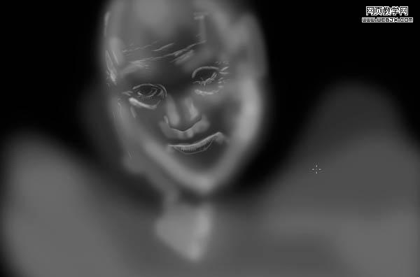 用大而軟的畫筆。不透明度20%左右。用黑色在這一層的面部區域反復涂畫。