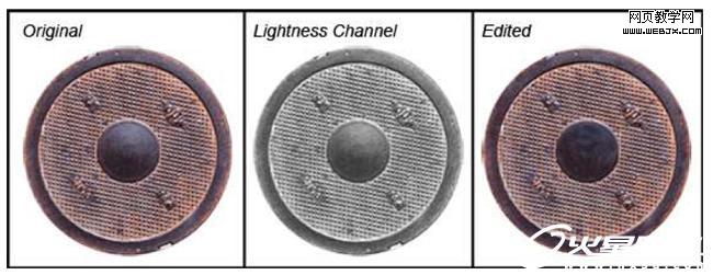 我所謂的合適圖片意思是指沒有類似高光、陰影或是燈色這樣的圖片素材。網上許多商用材質庫里的素材就帶有高光及陰影信息,而這種自帶光照信息的素材在3d場景中的使用很容易渲染出穿幫的效果。當你使用實拍素材來繪制貼圖時,盡量避免自帶光照信息的圖片。如果你找到一張非常合適的素材但就是局部有燈效,不必擔心,這有很多種方法可以修復。常規的方法有兩種,一種就是用筆刷工具或是仿制圖章工具把不需要的地方給補上,另外一種就是把素材轉換成lab模式,然后調整亮度通道。