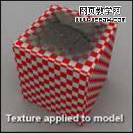 這就是應用到模型上的實際效果。一旦貼圖被貼到模型上,三維軟件就可識別出圖片自帶的alpha通道。于是貼上的材質根據alpha通道從中間亮到四周暗的方式逐步增加透明度,最終形成一個光滑的淡出過渡,透出箱子的第二層棋盤格材質。