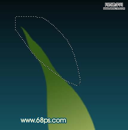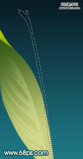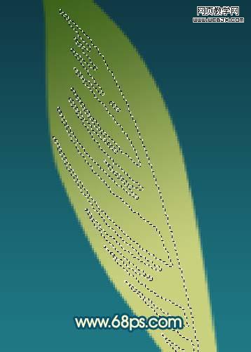4、新建一個圖層,用鋼筆勾出葉脈路徑,轉為選區如圖9,填充顏色:#d2db93,適當調整下不透明度,效果如圖10。