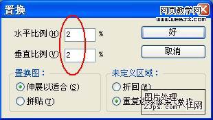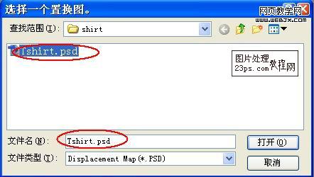 7、先對三角形圖案采用變形濾鏡:濾鏡—扭曲—置換,按下圖調節好參數后選擇剛才建立的tshirt.psd文件并打開,如下