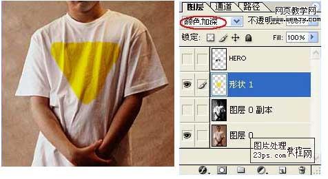8、將混合模式設置為顏色加深,完成后效果如下: