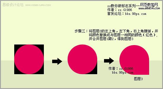 3、將圖層2的左上角,左下角,右上角擦掉,并將顏色變成紅色。然后把圖層1和圖層2合并。