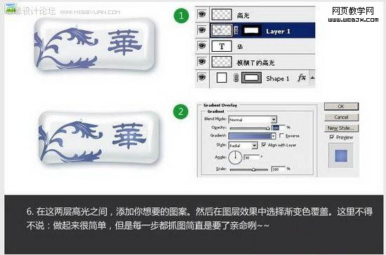 6、在這兩層亮光之間,添加你想要的圖案。然后在圖層效果中選擇漸變色覆蓋。