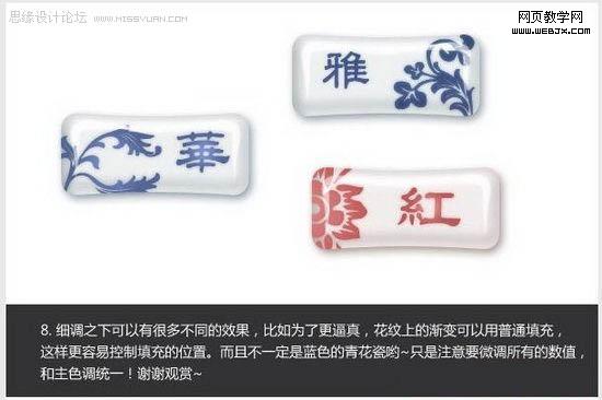 8、細調之下可以有很多不同的效果,比如為了更逼真,花紋上的漸變可以用普通填充。這樣更容易控制填充的位置。