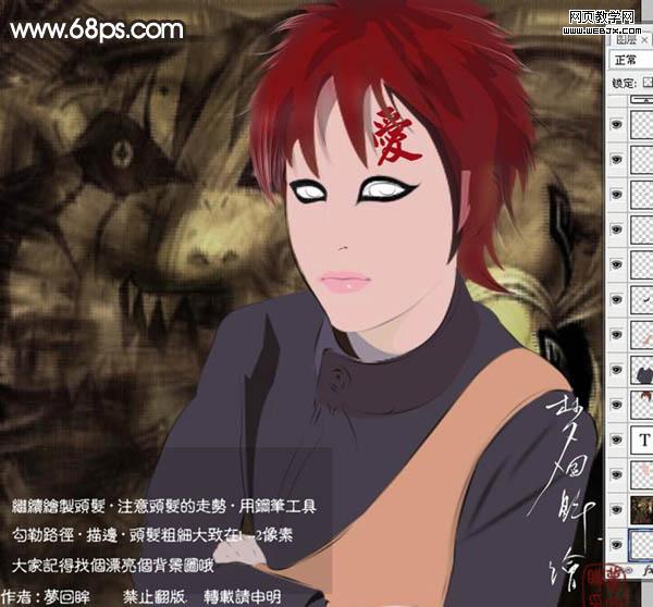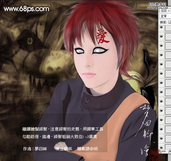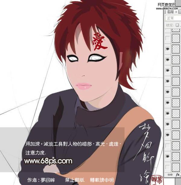 作者的美術功底非常強悍,人物細節(jié)及色彩刻畫的相當不錯。整體看起來非常干凈。不過教程的過程介紹有點簡陋,很多細節(jié)還需要自己慢慢去思考摸索完成。