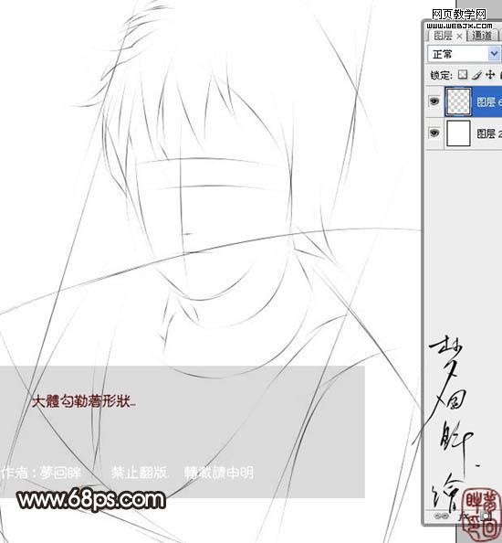 1、現(xiàn)在我開始為大家鼠繪一幅“我愛羅”,由于沒有數(shù)位板。繪畫草稿比較麻煩。我是直接在ps上構圖繪畫的,有美術功底的朋友可以多練習下酒熟悉了。實在不行的就在紙上打出草稿,然后掃描上來。