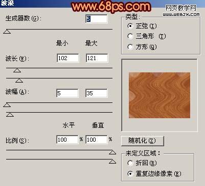 2、執行:濾鏡 > 扭曲 > 波浪,參數設置如圖3,效果如圖4。
