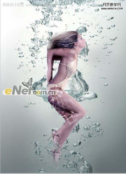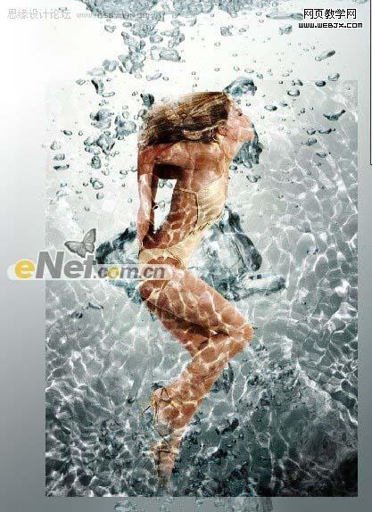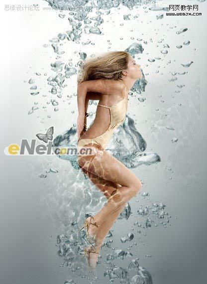 12、在為圖層4添加圖層蒙版,結合“畫筆工具”,在水圖像上進行涂抹,制作出水包圍美女的效果,得到如圖18所示的最終效果。
