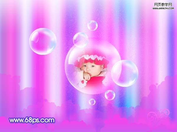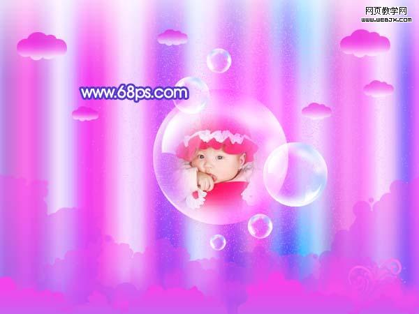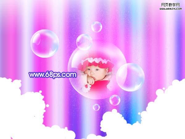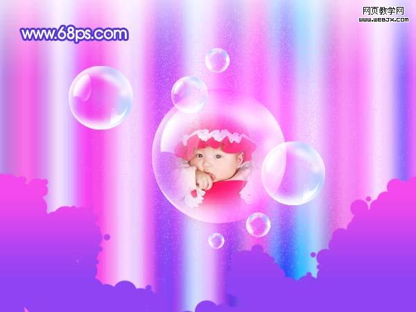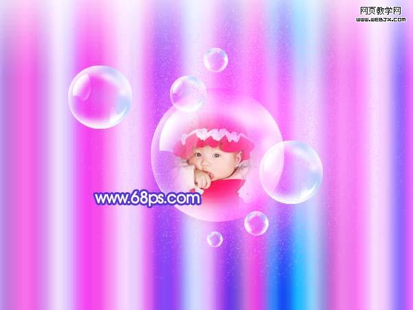 7、制作一些泡泡,可以使用氣泡筆刷,適當調整好大小和位置,效果如下圖。