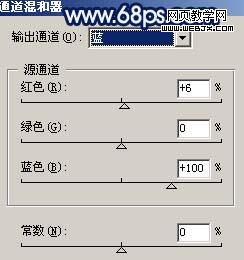 5、創建通道混合器調整圖層,對藍色進行調整,參數設置如圖8,效果如圖9。