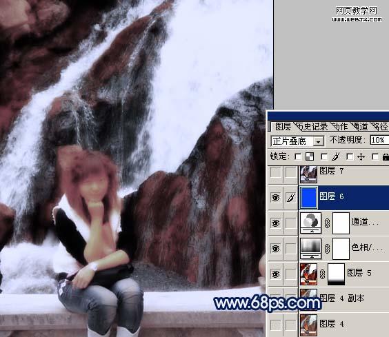 6、新建一個圖層,填充顏色:#0744fd,圖層混合模式改為“正片疊底”,圖層不透明度改為:10%,效果如下圖。