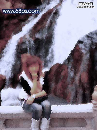 12、新建一個圖層,蓋印圖層,用模糊工具把背景稍微模糊一下,效果如下圖。