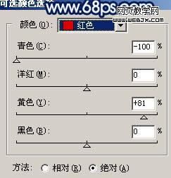 1、打開原圖素材,創建可選顏色調整圖層,對紅色及黃色進行調整,參數設置如圖1,2,效果如圖3。