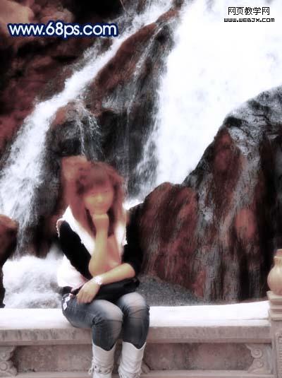 3、新建一個圖層,按ctrl + alt + shift + e 蓋印圖層,執行:濾鏡 > 模糊 > 高斯模糊,數值為5,確定后按ctrl + b 稍微調紅一點,加上圖層蒙版用黑色畫筆把底部擦出來,效果如下圖。
