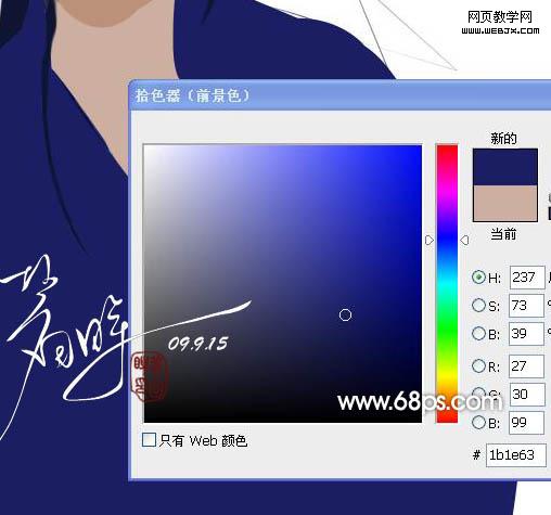 5、衣服部分勾出選區(qū)后填充顏色:#1b1e63。