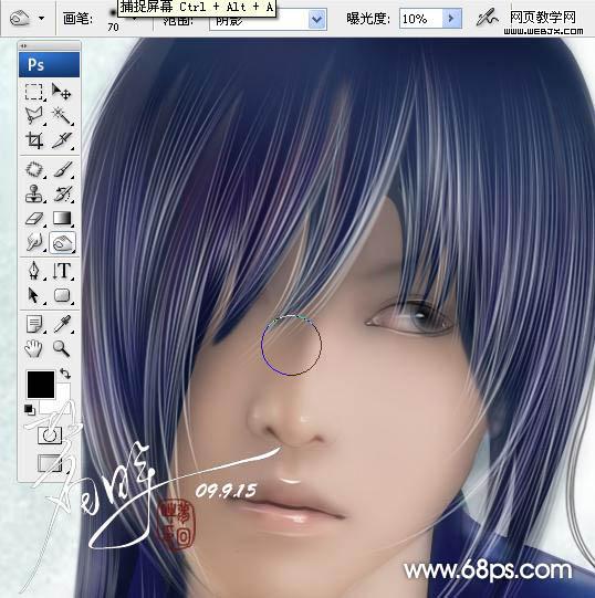 7、新建一個圖層,選擇柔角畫筆畫出頭發(fā)的層次感。