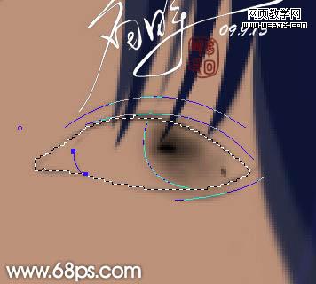 10、繪制眼睛:用鋼筆勾勒整體,填充顏色后用加深工具順著路徑反復(fù)加深。