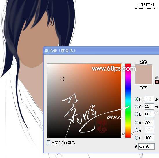 4、脖子部分,勾出選區(qū)后新建一個圖層填充顏色:#ccafa0。