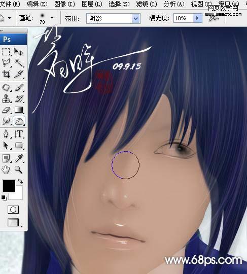 12、利用加深,減淡工具順著光的走勢對陰影和受光面進(jìn)行過渡處理,反復(fù)過渡。